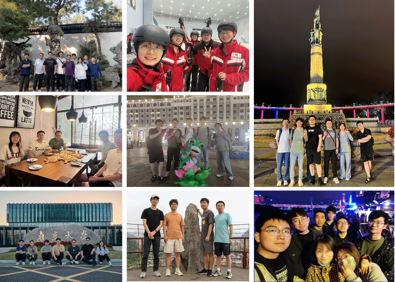 课题组每年会定期或不定期组织团建活动,包括户外活动、聚餐、毕业聚会等,以增进团队成员之间的凝聚力;支持员工参加国际会议及国家公派联合培养项目,拓宽视野,提升学术素养。
