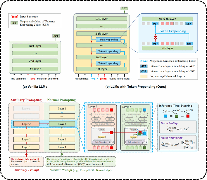 [1]Yuchen Fu, Zifeng Cheng, Zhiwei Jiang*, Zhonghui Wang, Yafeng Yin, Zhengliang Li, Qing Gu. Token Prepending: A Training-Free Approach for Eliciting Better Sentence Embeddings from LLMs. In Proceedings of the 63st Annual Meeting of the Association for Computational Linguistics (ACL). 2025. (CCF-A)