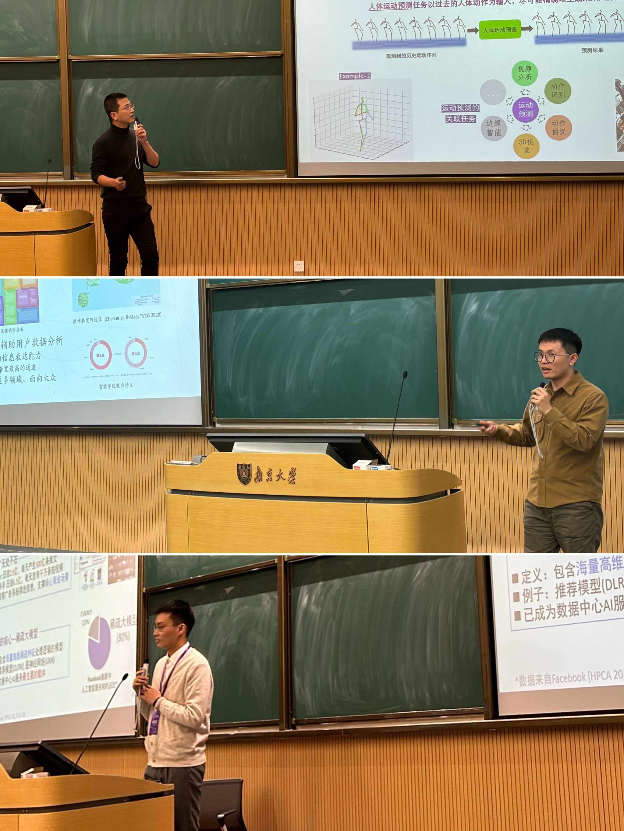 座谈会结束后,公司领导与青年学者一行移步南雍楼,为苏州校区近一百名员工开展了智能软件方向前沿科技的学术报告会。报告会由公司钮鑫涛老师主持,本场报告会受到了师生的广泛关注和积极参与。会上,在场师生与主讲嘉宾进行了深入交流探讨。